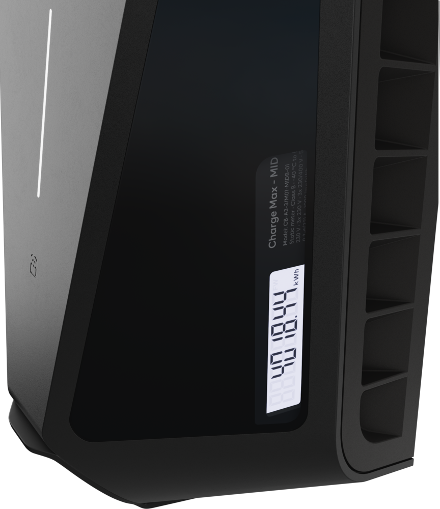 Dankzij de geïntegreerde MID-gecertificeerde meter wordt het energieverbruik nauwkeurig bijgehouden, met een afwijking van slechts ±1%. Ideaal voor correcte facturering en transparante vergoeding van laadkosten.